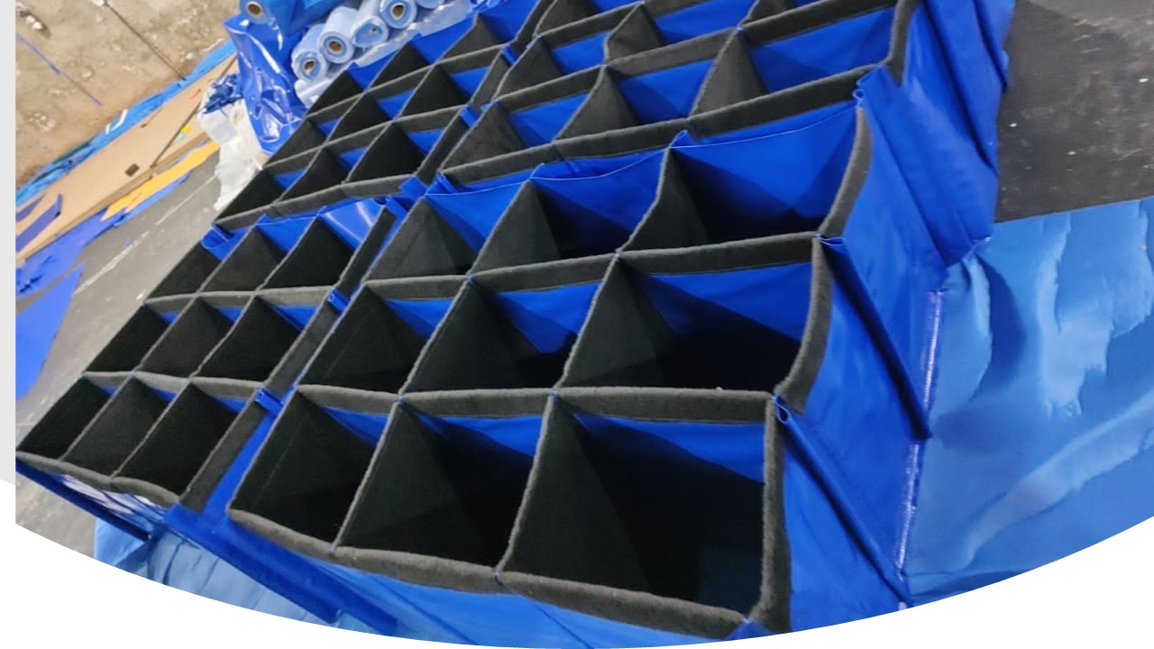 Produzimos colmeias conforme a necessidade de cada cliente, em cores e conforme as especificações de cada um, como por exemplo, caixas para peças pesadas, colméias revestidas em TNT, EVA, Tecido e PU.